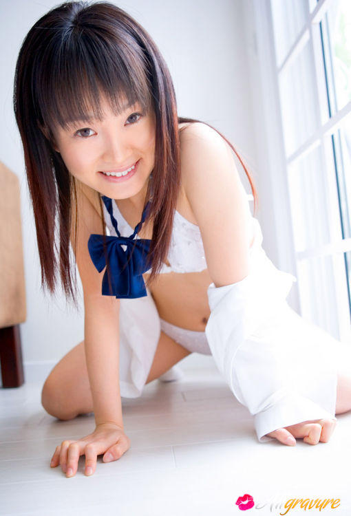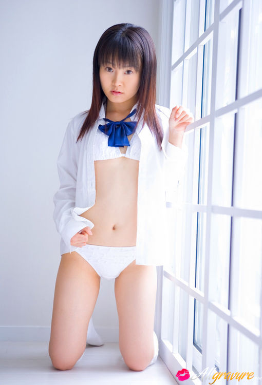 Kana Moriyama Asian takes uniform off piece by piece at window